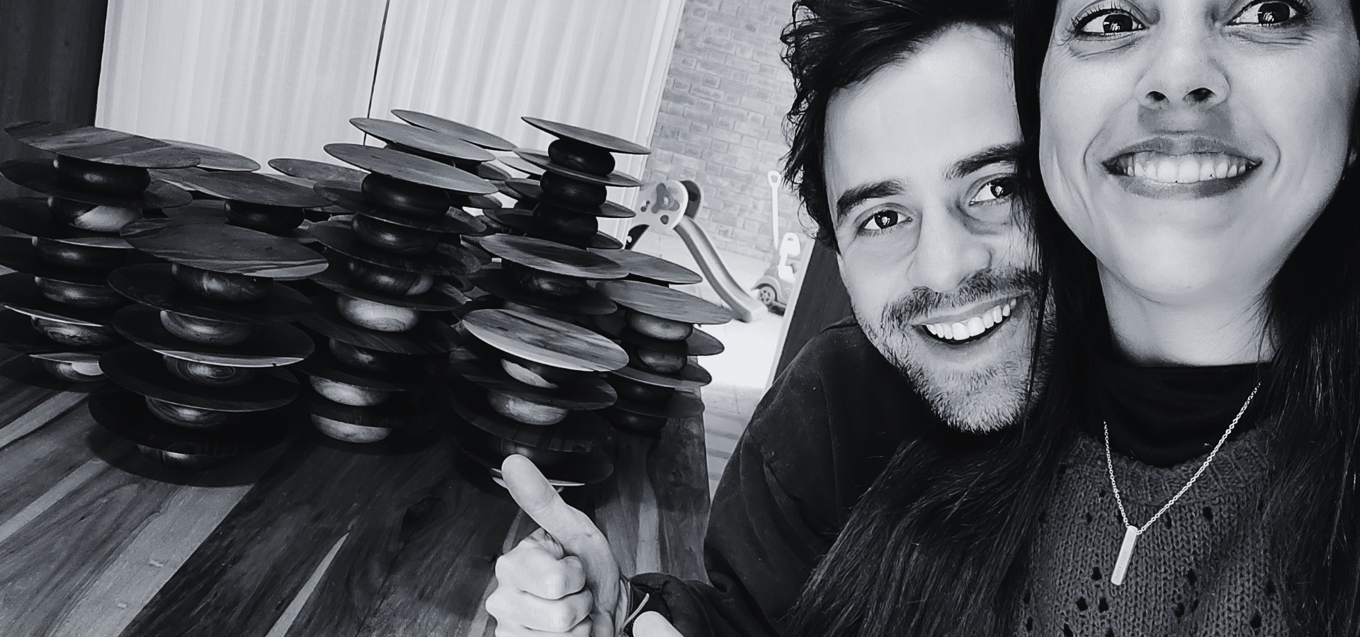 Somos Juan Cruz y Virginia, el equipo detrás del ESTUDIO DE TORNERIA EN MADERA que está dando vida a objetos de diseño e interiorismo.